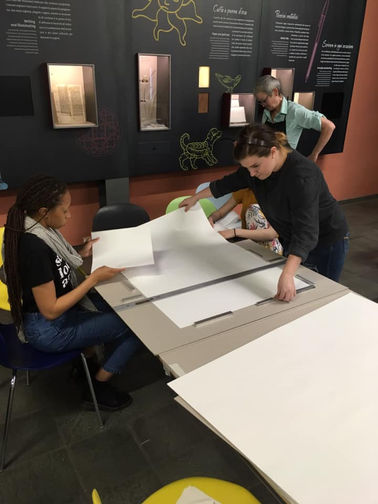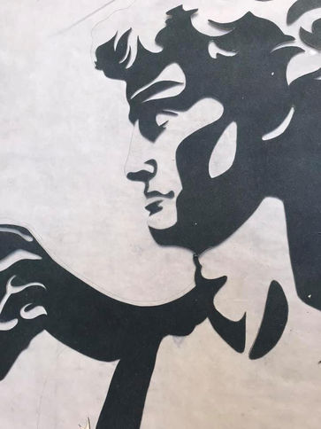 Our first stop was the Florence School of Fine Arts where we worked with Melania, Charlie, and their assistant Antonia to create posters using large format letter press techniques.We were split into group of 3 or 2 and were to think of a creative composition to create with the printing presses. We thought of printing an iconic symbol of Florence, Michelangelo's David, and having wood type circumferencing his head. I worked with Sarah and Hana to create these posters.